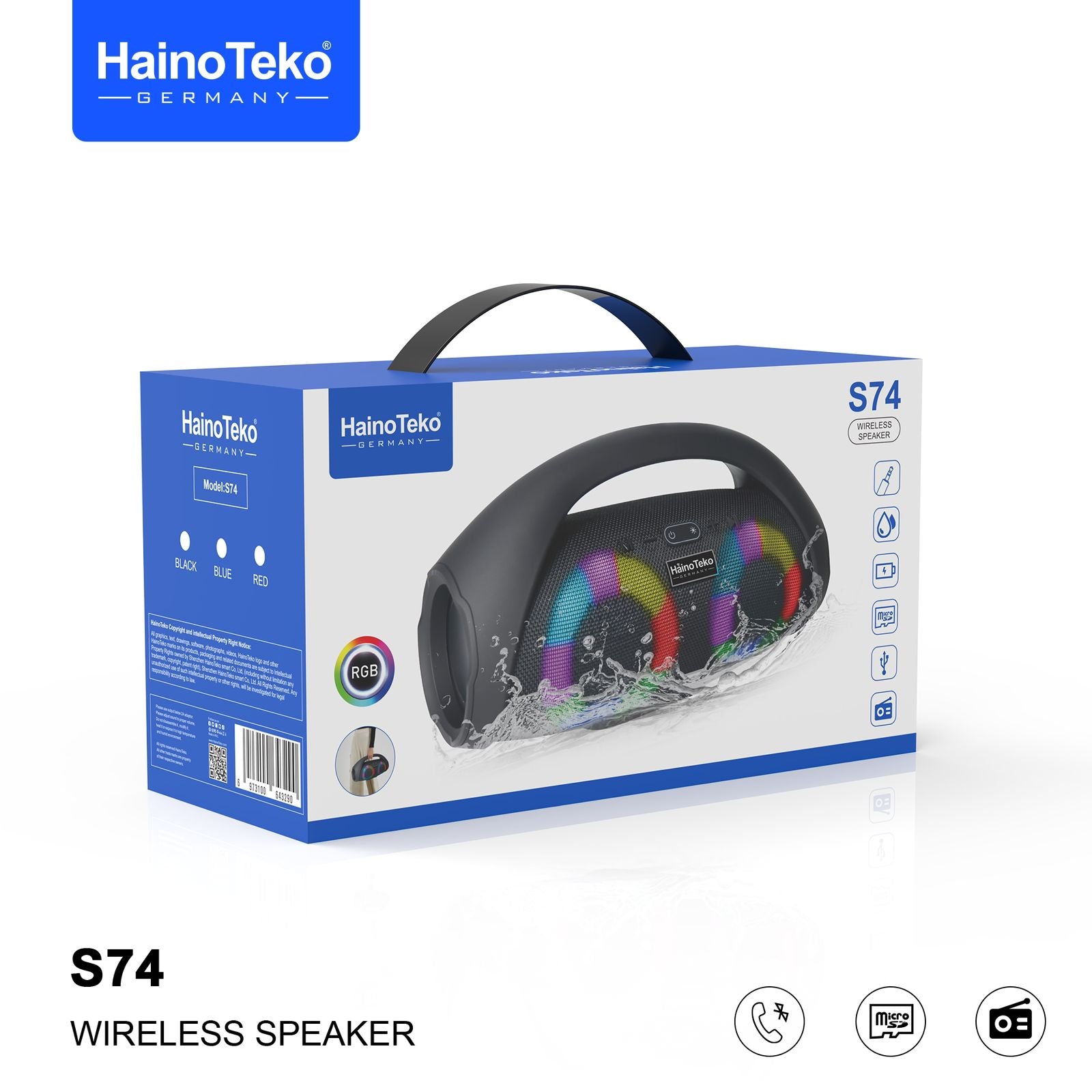 Discover premium sound quality with the hainoteko S74 wireless speaker. With advanced wireless technology, experience crystal clear audio at your fingertips. Enjoy up to 12 hours of continuous playback and effortlessly connect to your device with Bluetooth compatibility. Elevate your listening experience with hainoteko. This compact wireless speaker provides exceptional sound quality with its advanced wireless technology. You'll be able to enjoy crystal clear audio with ease, as well as a prolonged 12 hours of continuous playback. Plus, its Bluetooth compatibility makes it effortless to connect to your device. Elevate your listening experience with the top-notch hainoteko S74.